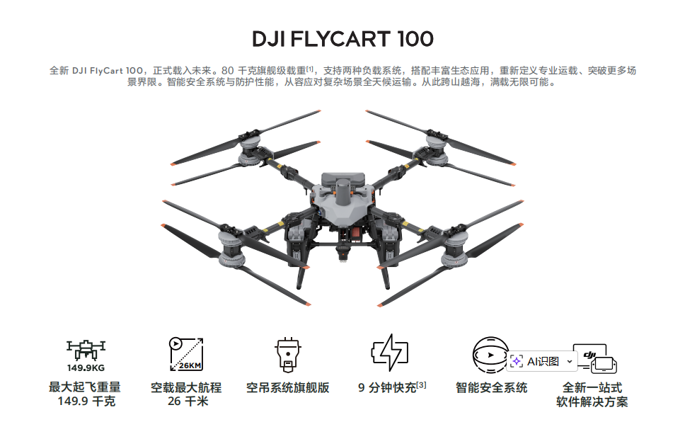 海平面 25℃ 测得,DJI Delivery App 会根据当前飞行器状态,环境情况及作业任务智能推荐载重,货物的*大重量切勿超过推荐值,否则可能影响飞行安全。